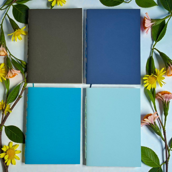 Este pack reúne 4 libretas artesanales A5 en tonos fríos y suaves, pensadas para quienes buscan una estética serena y contemporánea.