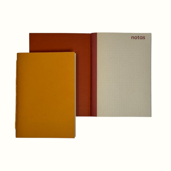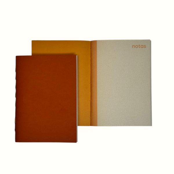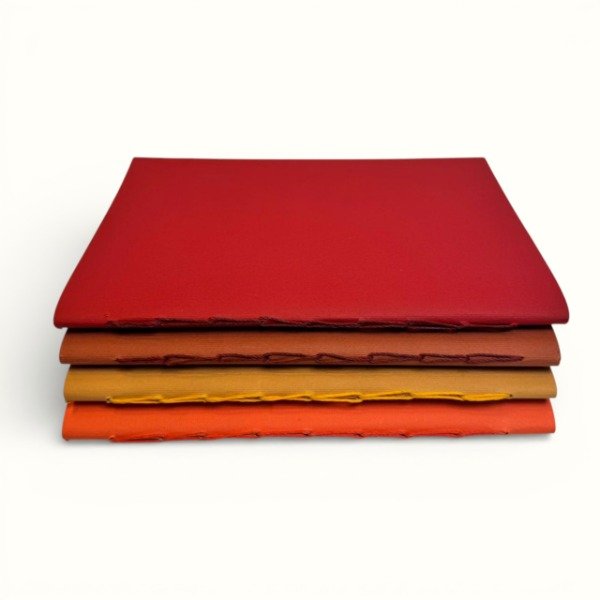 Un pack de 4 libretas artesanales A5 en una paleta de colores cálidos que evocan lo natural y lo cotidiano. Diseñadas para acompañar la escritura diaria con una estética simple y coherente.