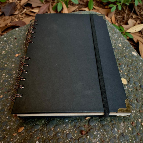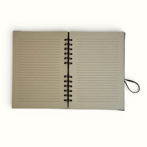 Cuaderno A5 de tapa dura pensada para un uso intensivo, combinando funcionalidad y diseño artesanal. Su tapa de cartulina texturada 220gr negro mate aporta una estética sobria y natural, ideal para el día a día.