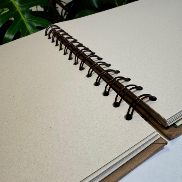 El cuaderno A4 ofrece un formato amplio y funcional, perfecto para estudio, trabajo o proyectos creativos. Su tapa dura forrada en craft aporta firmeza y una estética natural y atemporal, mientras que el anillado del lado vertical permite una apertura cómoda y práctica. El interior cuenta con 100 hojas de papel Ledesma Natural 80 g, en color natural/hueso.
