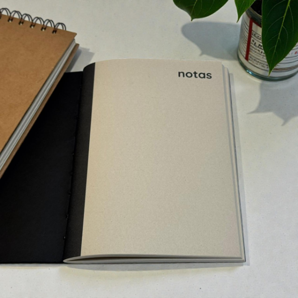 Un pack pensado para quienes necesitan espacio, resistencia y una estética sobria. Combina un cuaderno anillado A4 de tapa dura, forrado en cartulina craft 250 g, con una libreta negra artesanal A5, ideal para acompañar notas rápidas o llevar aparte.